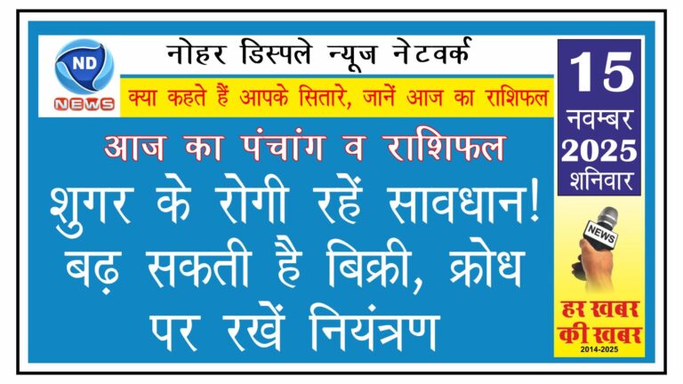 धर्म आज का राशिफल: शुगर के रोगी रहें सावधान!, बढ़ सकती है बिक्री, क्रोध पर रखें नियंत्रण adminNovember 15, 2025January 4, 20260 एनडी न्यूज, नोहर। दिनांक : 15/11/2025 सम्वत् : 2082 मास : मार्गशीर्ष कृष्ण पक्ष तिथि(aaj ki tithi) : एकादशी तिथि 02:37 AM तक उपरांत…