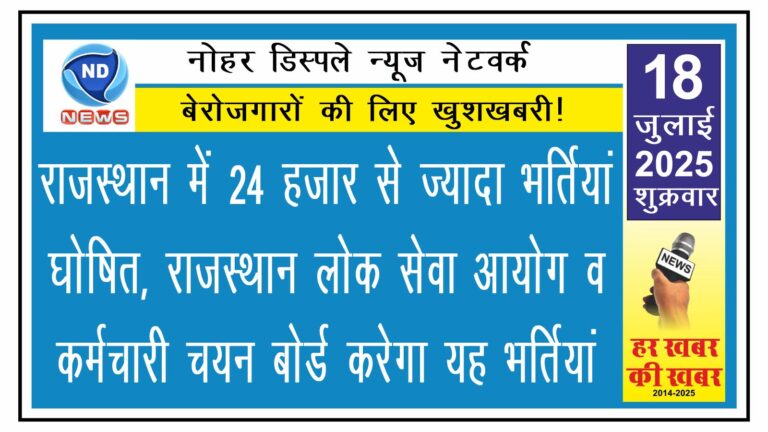 राजस्थानराजस्थान राजस्थान में 24 हजार से ज्यादा भर्तियां घोषित, राजस्थान लोक सेवा आयोग व कर्मचारी चयन बोर्ड करेगा यह भर्तियां adminJuly 18, 20250 एनडी न्यूज, नोहर। राजस्थान लोक सेवा आयोग व राजस्थान कर्मचारी चयन बोर्ड ने गुरुवार को विभिन्न 24 हजार से अधिक…