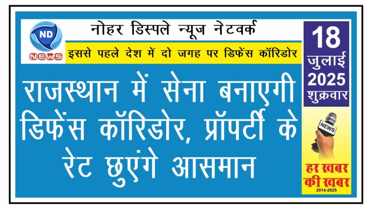 देशराजस्थान राजस्थान में सेना बनाएगी डिफेंस कॉरिडोर, प्रॉपर्टी के रेट छुएंगे आसमान adminJuly 18, 2025July 18, 20250 एनडी न्यूज, नेटवर्क। भारतीय सेना द्वारा राजस्थान में डिफेंस कॉरिडोर बनाने का निर्णय लिया है। डिफेंस कॉरिडोर बनाने के लिए…