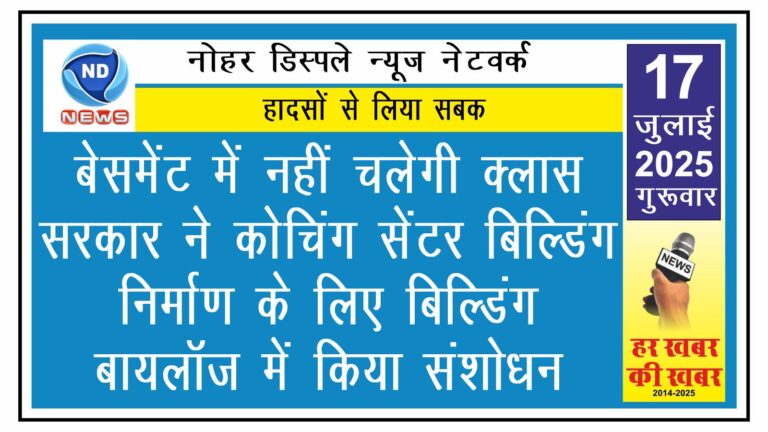 राजस्थान बेसमेंट में नहीं चलेगी क्लास, सरकार ने कोचिंग सेंटर बिल्डिंग निर्माण के लिए बिल्डिंग बायलॉज में किया संशोधन adminJuly 17, 2025July 17, 20250 एक समय में 100 से अधिक छात्र उपस्थित रहते तो संस्थानिक भवन विनियम लागू पहले 300 वर्गमीटर का नियम था।…