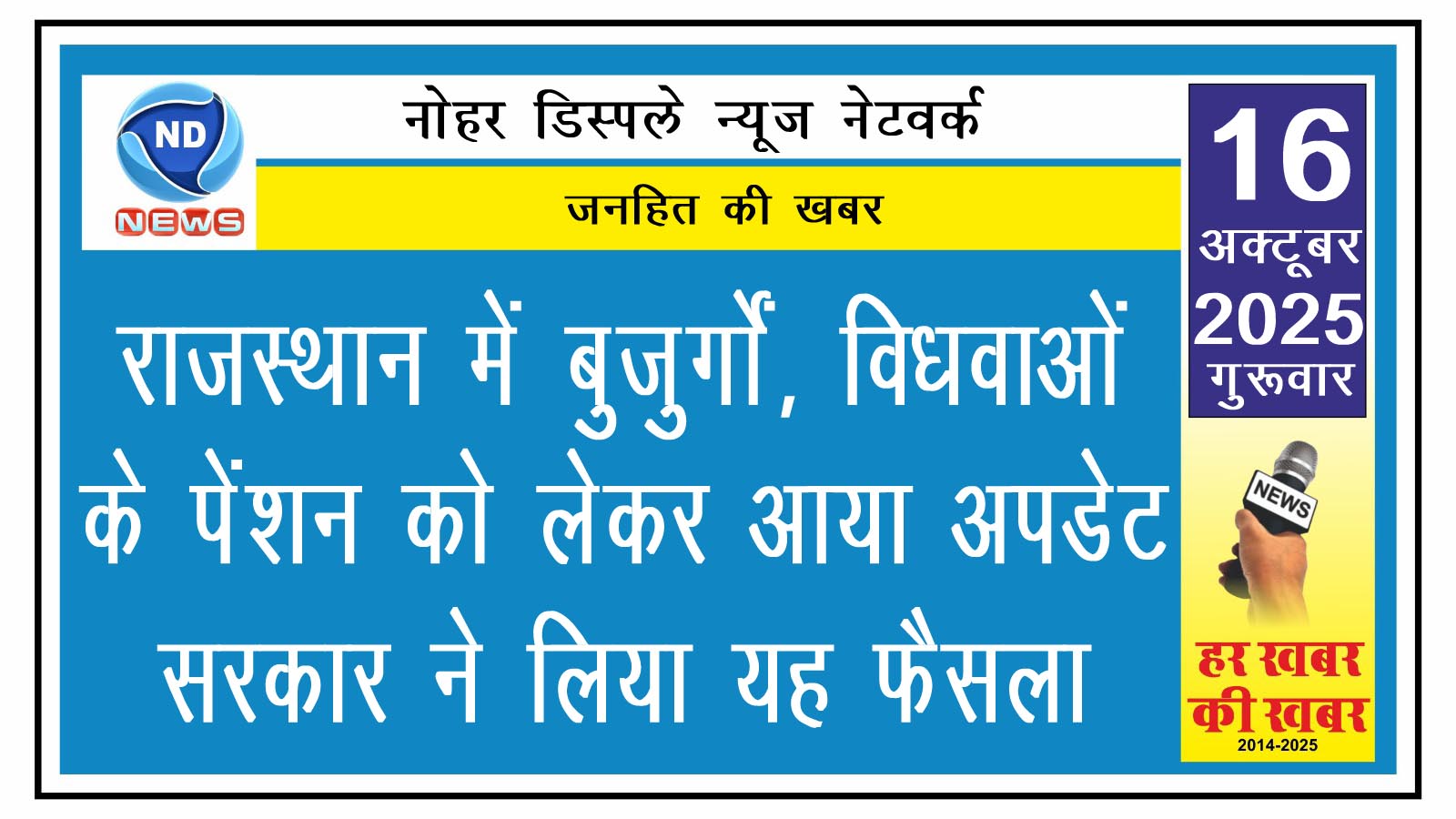 एनडी न्यूज, नोहर। राजस्थान में लगभग तीन लाख लोगों की पेंशन को लेकर सरकार का बड़ा फैसला आया है। सरकार की तरफ से अब फैसला लिया गया है कि तीन लाख से अधिक दिव्यांगों, विधवाओं और बुजुर्गों की पेंशन बंद नहीं की जाएगी। पहले 24,000 रुपये से अधिक वार्षिक बिजली बिल वाले लाभार्थियों की पेंशन रोकने का आदेश था, लेकिन अब सरकार ने स्पष्ट किया है कि किसी की पेंशन बंद नहीं की जाएगी, बल्कि ऐसे लाभार्थियों को स्वेच्छा से पेंशन छोड़ने के लिए प्रोत्साहित किया जाएगा। सभी पेंशनर्स का सत्यापन 15 नवंबर तक होगा।